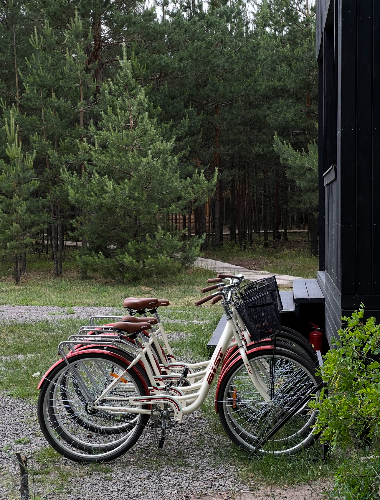 В стоимость проживания входит аренда велосипеда. Всего велосипедов 4 шт Маршрут для поездки представлен в каждом домике